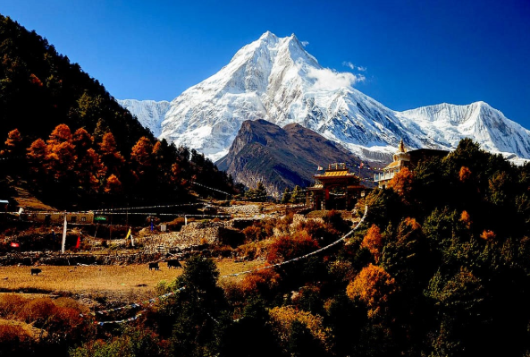 The Manaslu Circuit Trek encircles Mount Manaslu, the eighth-highest peak in the world at 8,163 meters, offering a remote and authentic Himalayan adventure in Nepal’s Gorkha District within the Manaslu Conservation Area. This 177-190 kilometer loop takes trekkers through diverse landscapes, from subtropical forests and terraced rice fields to alpine meadows, glacier-carved valleys, and Tibetan-influenced villages with ancient monasteries and mani walls. Less crowded than the Everest Base Camp or Annapurna Circuit, it attracts those seeking solitude, cultural immersion, and stunning views of peaks like Himalchuli, Ganesh Himal, and Annapurna II. The trek’s highlight is crossing the challenging Larke La Pass at 5,106-5,160 meters, providing panoramic vistas and a sense of achievement. In 2025, with stable regulations emphasizing sustainable tourism, the trek remains restricted, requiring a licensed guide and group travel, making it ideal for experienced hikers or fit beginners craving wilderness. Typically spanning 13-14 days of walking (plus travel), it starts and ends in Kathmandu, covering elevations from 700 meters to over 5,000 meters. Best seasons are spring (March-May) for blooming rhododendrons and mild weather, or autumn (September-November) for clear skies and festivals, avoiding monsoon rains or winter snows.